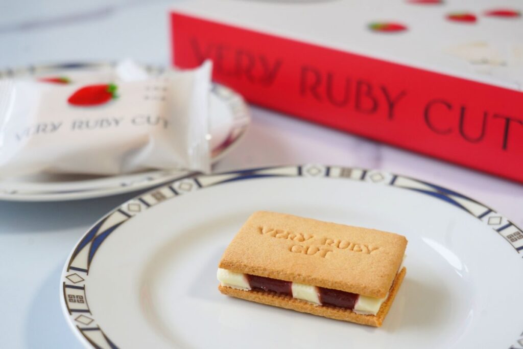 「イタリア産サブリナ苺」を煮詰めた甘酸っぱいコンフィチュールと、練乳ミルクのコクを感じるホワイトショコラをしっとりクッキーでサンド。